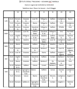 Orario provvisorio delle lezioni dal 15 al 19 settembre 2025Tabellone docenti orario (1)Tabellone classi plesso Sacro CuoreTabellone classi plesso via Falcone, 20Tabellone orario classi liceo classico